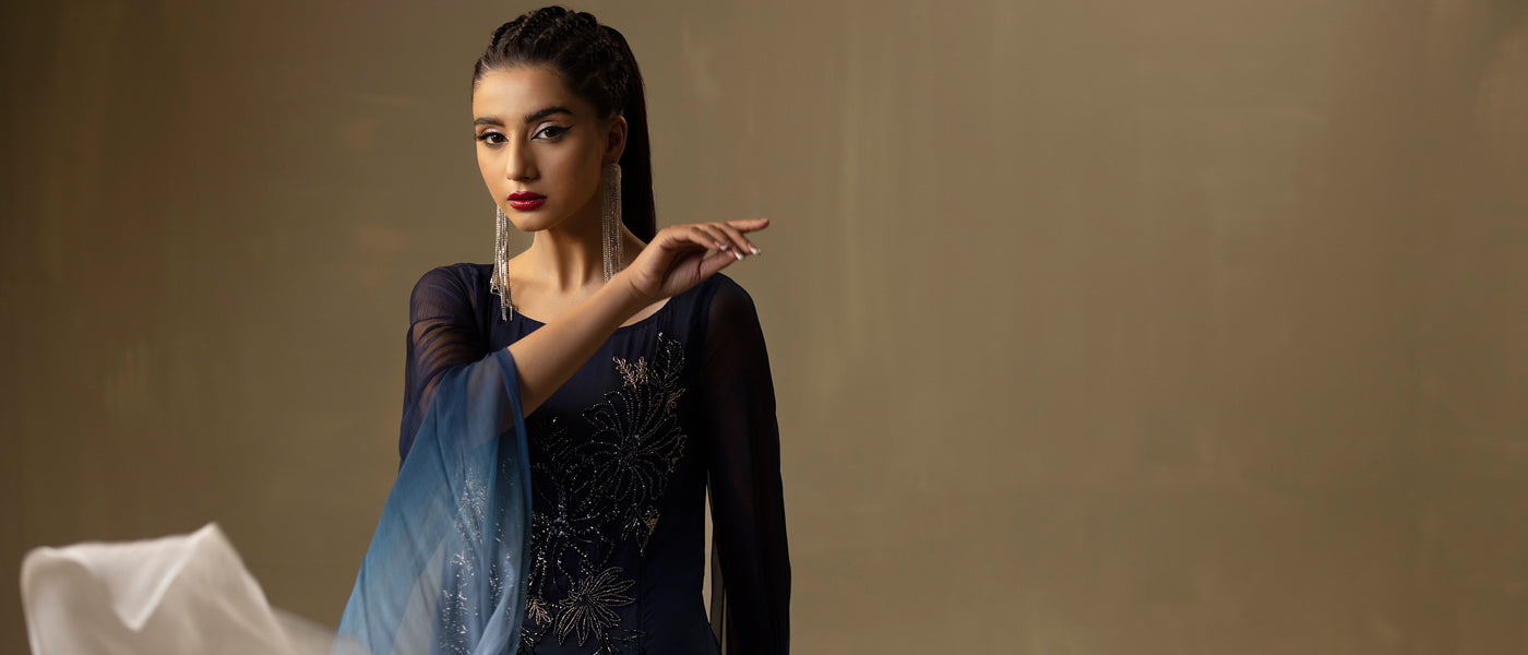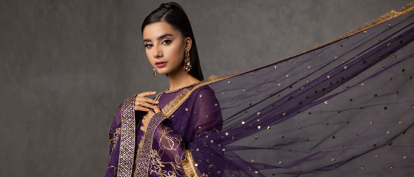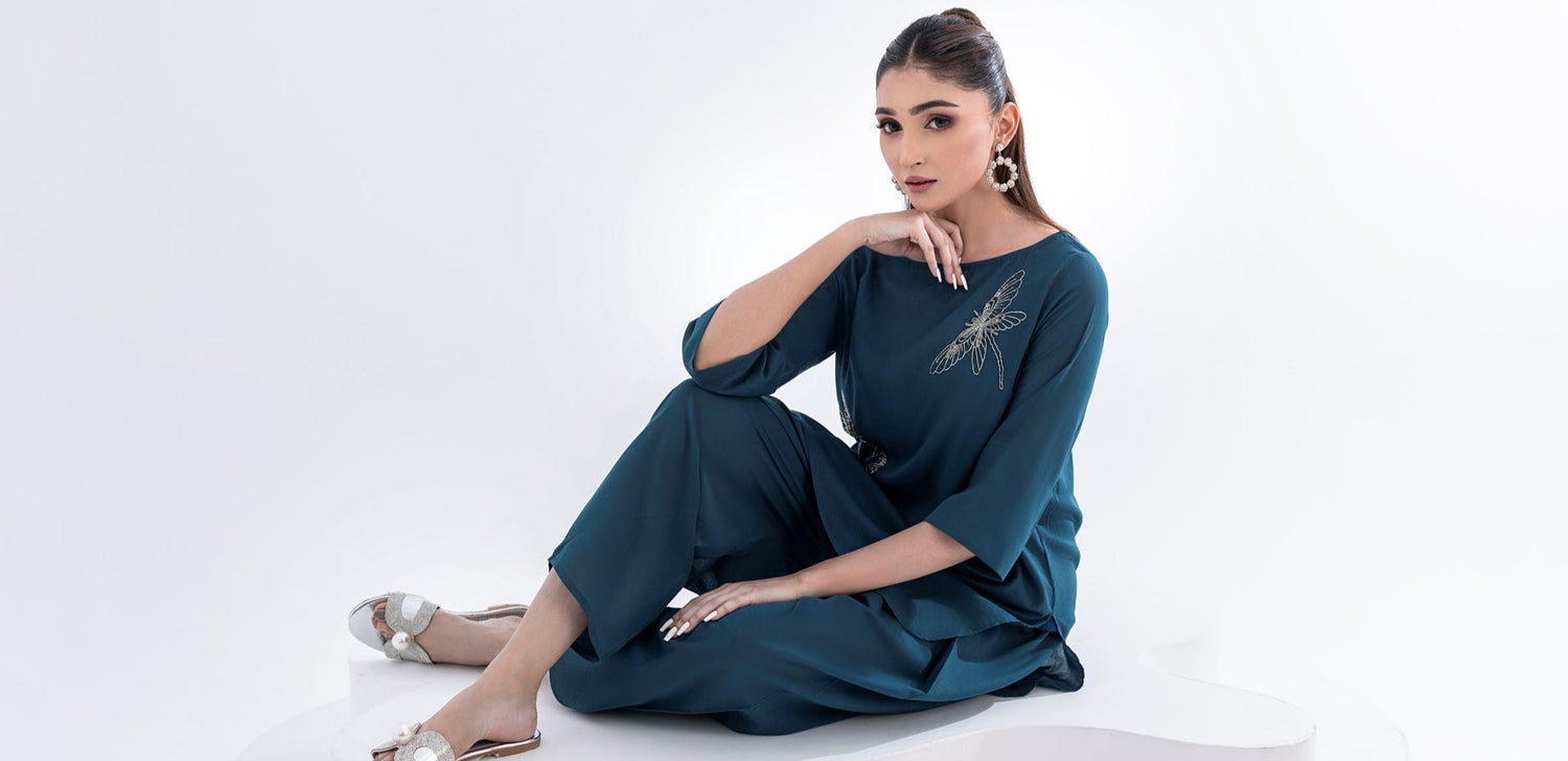 ZEEN – Hand Embellished Short Shirt with Slim Fit Shalwar & Chiffon Dupatta